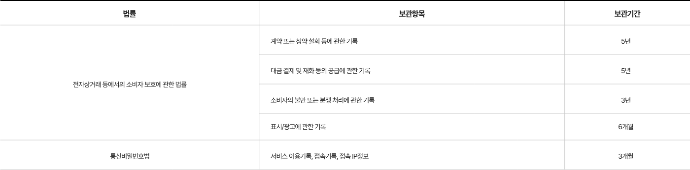 4) 서비스 이용의 혼선방지를 위해 다음의 정보를 서비스 종료 시까지 보유합니다.